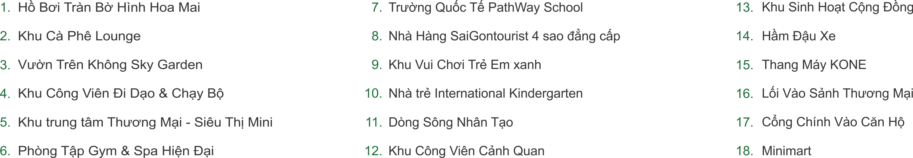 Sau một ngày bận rộn, điều tuyệt vời nhất là khi được trở về nhà – nơi “thắp lửa” cho hạnh phúc. Mọi lo toan, căng thẳng, mệt mỏi trong công việc của bạn sẽ biến mất nhường chỗ cho một không gian yên bình, một tâm hồn thư thái, an nhiên khi tản bộ cùng người thân trên những con đường rực rỡ sắc hoa trong khu vườn xanh mướt, được ngâm mình thư giãn trong làn nước hồ bơi trong xanh, hay vừa nhâm nhi ly cà phê thơm phức, vừa ngắm sông Sài Gòn từ trên cao.